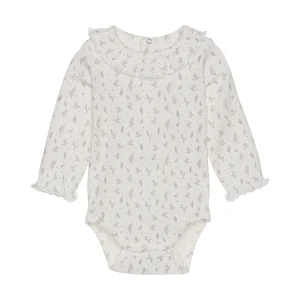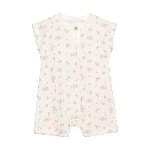 Barboteuse – Blanc et fleurs délicates rose – Fixoni