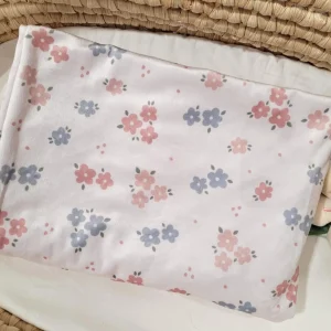 Couverture de minky – Floral rose et bleu gris – Mlle et Coco