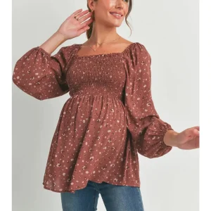 Blouse maternité manches longues smocké – Floral marron – Hello Miz
