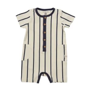 Barboteuse de coton – Petites rayures grises et avoine – En Fant