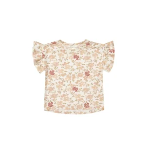 T-shirt manches courtes à volant – Rose floral – Rylee + Cru