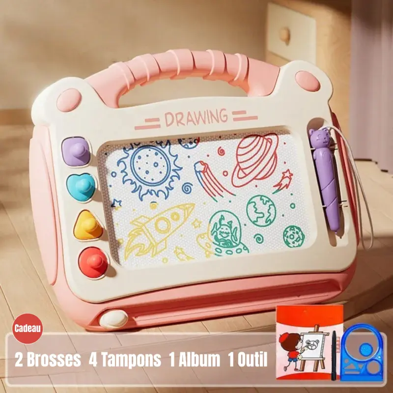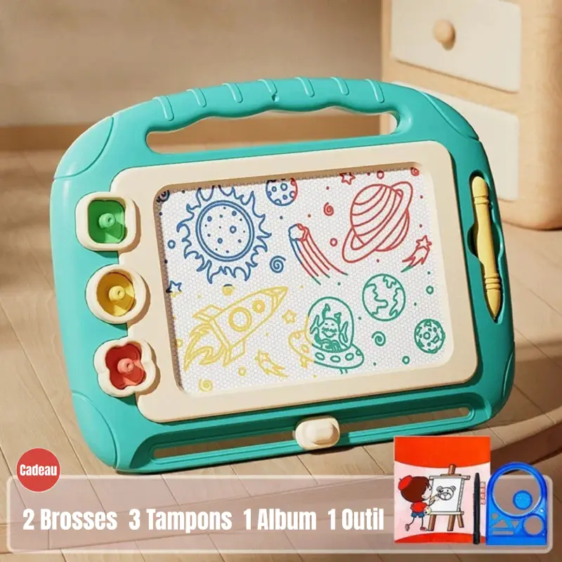 Cette Ardoise Magique pour Bébé Multicolore avec Accessoires ne fait pas que dessiner.