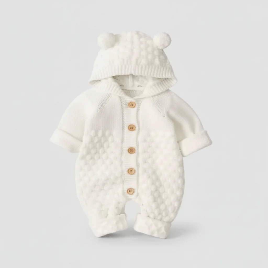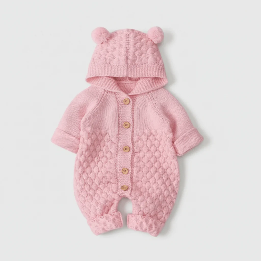Barboteuse bébé tricotée à capuche – Confort et douceur garantis