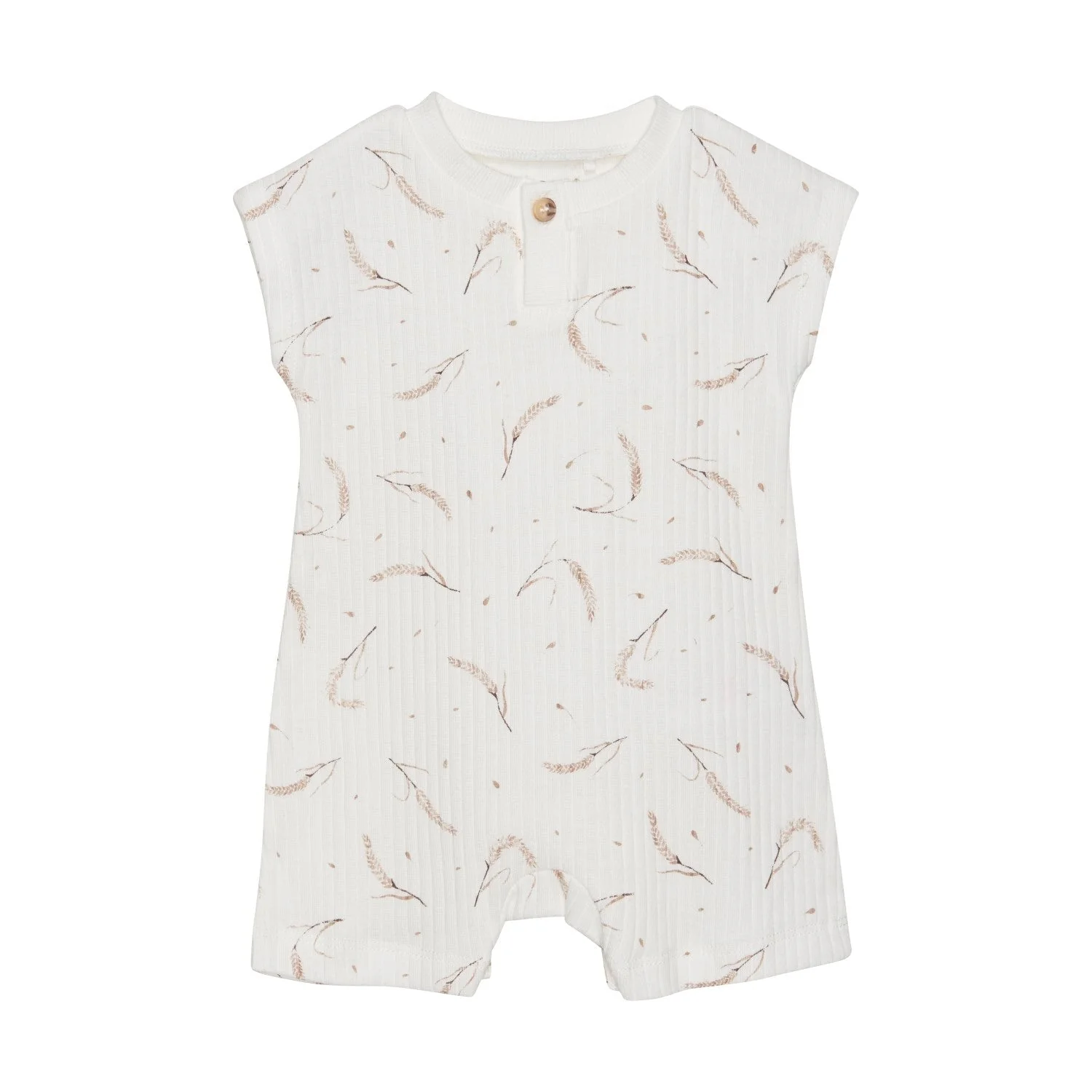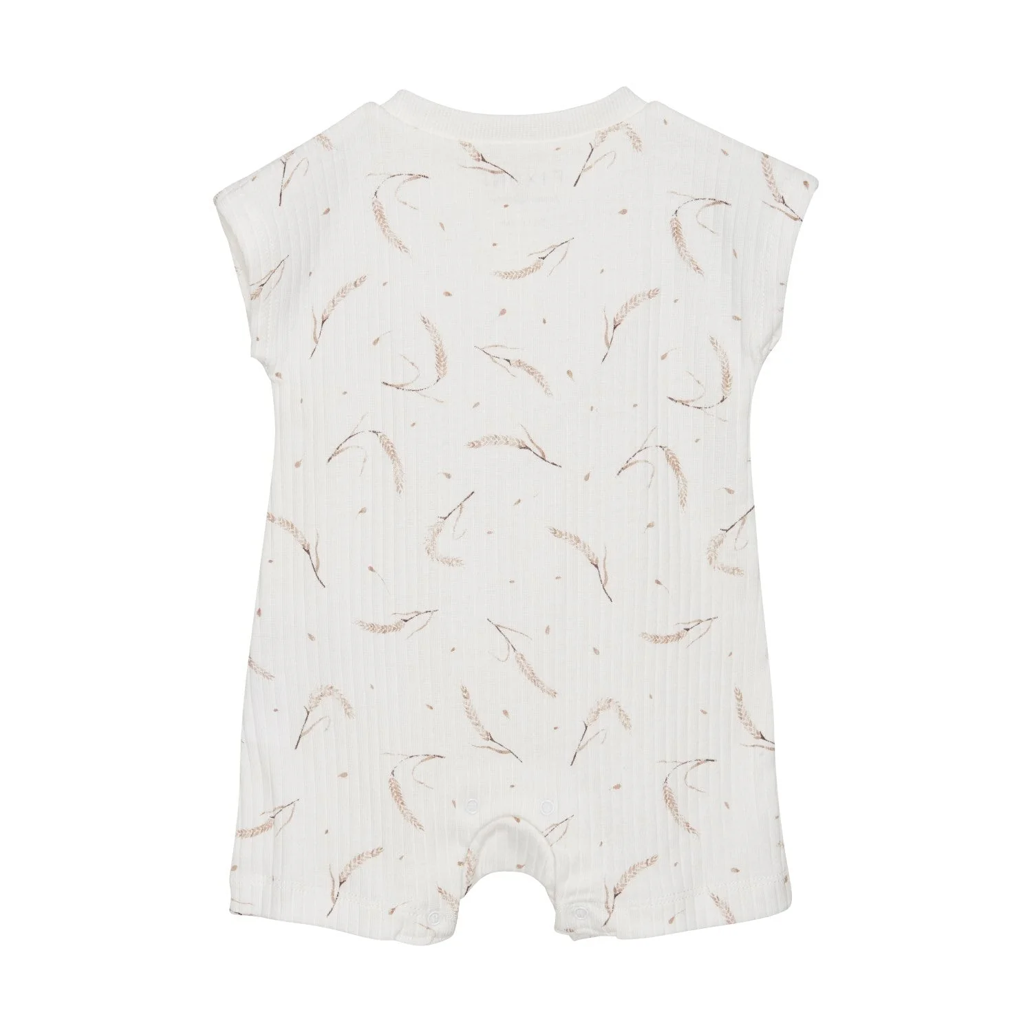 Ensemble une pièce de style barboteuse blanc avec motifs de blés Fixoni. Ouverture au bas pour faciliter les changements de couches. Son tissu doux et souple offrira tout le confort désiré pour votre tout-petit.