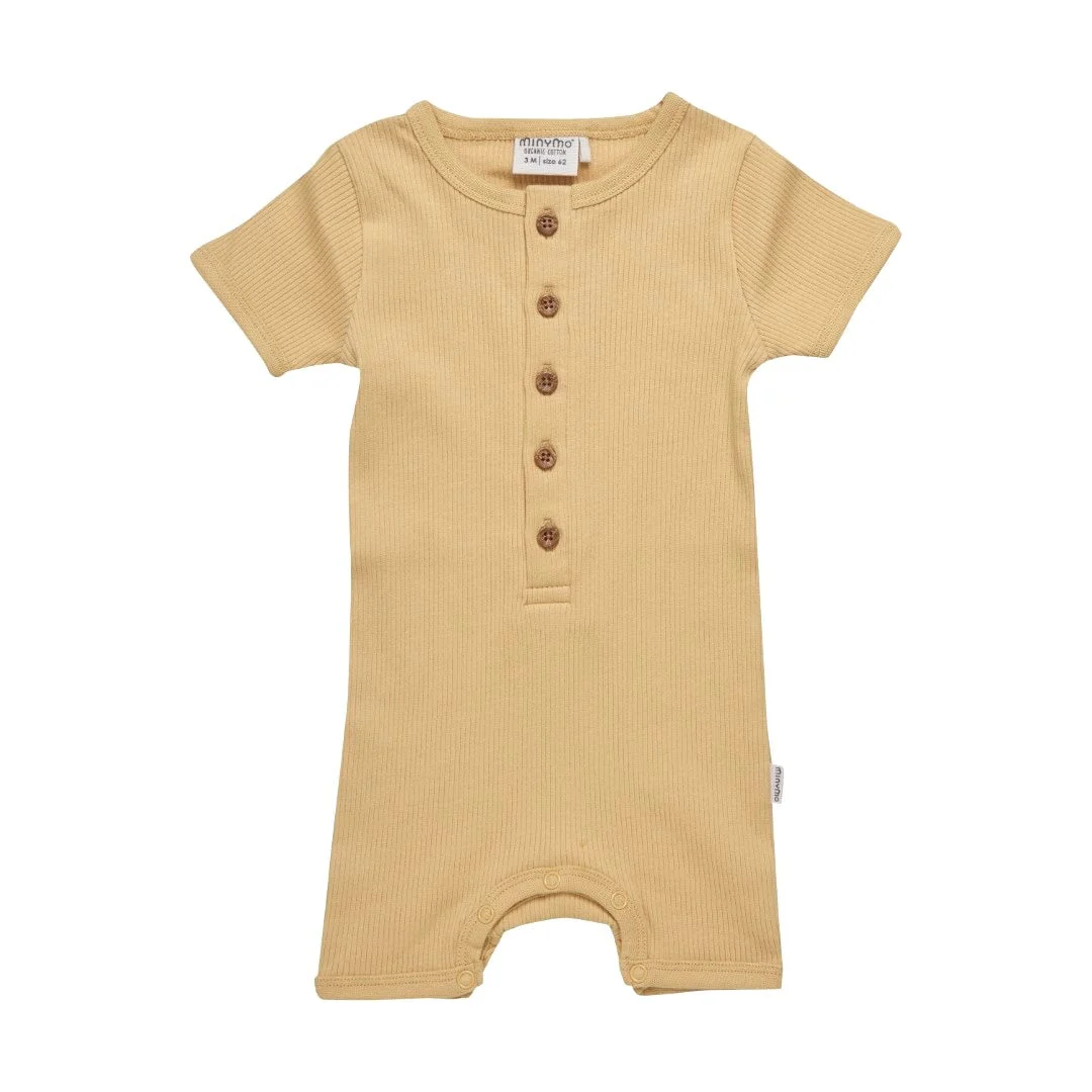 Petite barboteuse dijon manches courtes de Minymo. Son tissu côtelé et doux est conçu pour offrir toute la liberté de mouvement désiré pour votre tout-petit. Il deviendra vite un élément-clé de sa garde-robe.