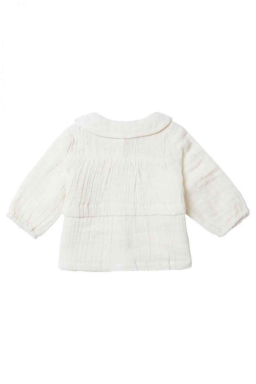 La blouse Crown de Noppies est un adorable haut à volants avec un col rond et des poignets élastiques. Son tissu en mousseline texturée lui apporte une touche encore plus charmante ! Confectionnée en coton léger et respirant, elle est parfaite pour une tenue en superposition ou pour les journées très chaudes.
