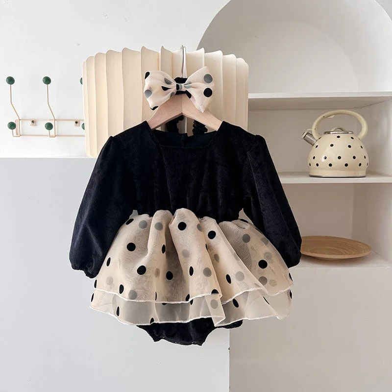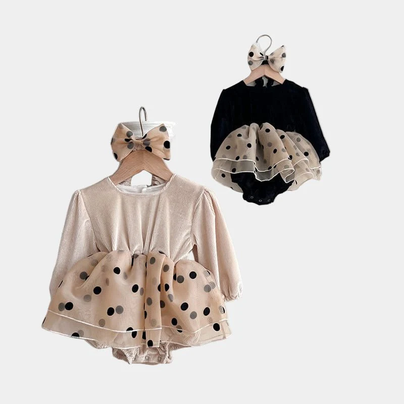 Offrez à votre petite fille un look irrésistible avec notre body jupe à pois, alliant élégance intemporelle et confort quotidien.