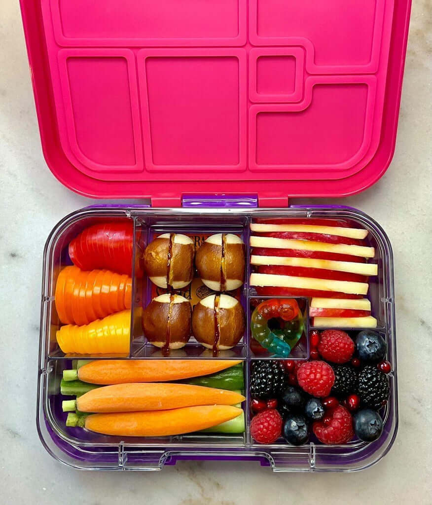 La conception Mini4 s’adapte à : 1 portion de 3 tasses – idéale pour les sandwichs, les wraps, les salades, les sushis ou les pâtes, etc. 2 portions de 1 tasse – accompagnements et collations saines comme des fruits, des légumes et du yaourt. 1 x petite portion – convient pour les trempettes, les petites collations ou les friandises spéciales.