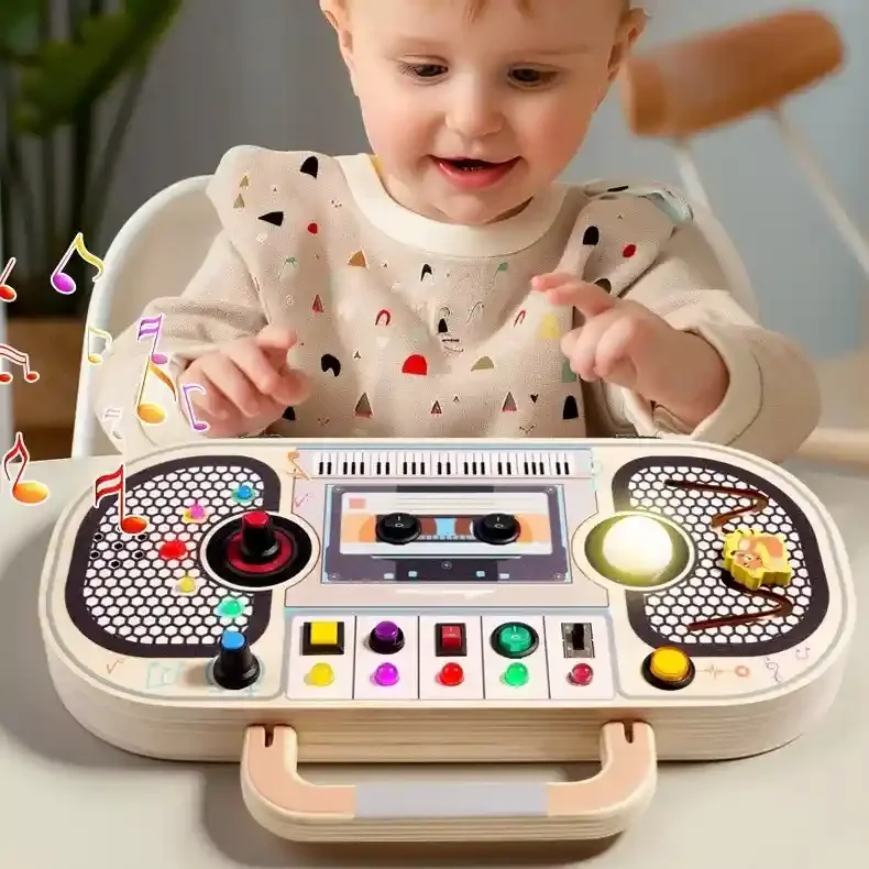 Ce Busy Board à Interrupteurs – Jouet Radio pour Bébé transforme chaque moment en découverte joyeuse.