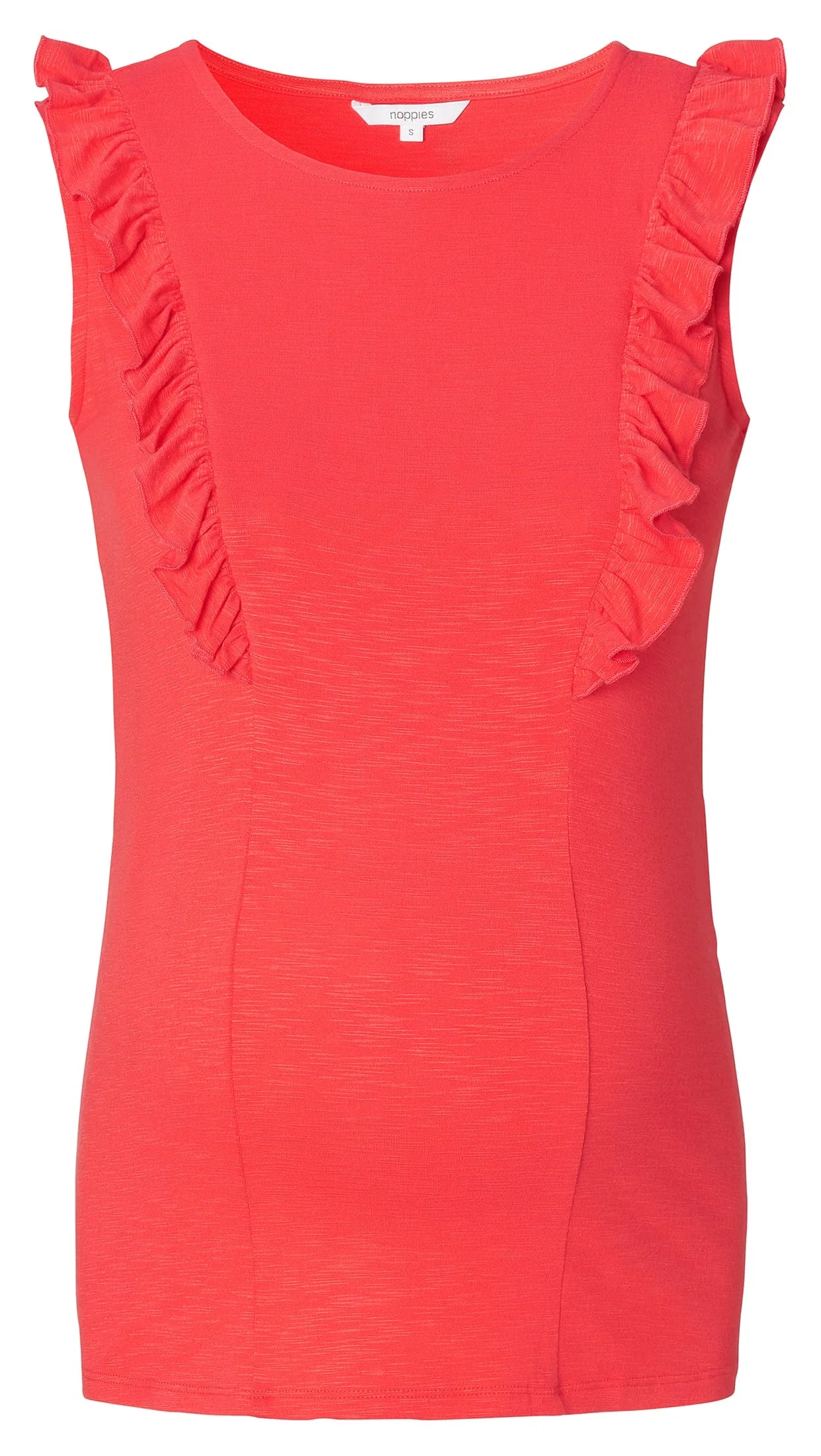 Camisole d’allaitement rouge de Noppies. Sous les petits frisons se cachent de petites fermetures éclaires pour un accès facile à l’allaitement. Son tissu extensible et doux vous apportera tout le confort désiré.