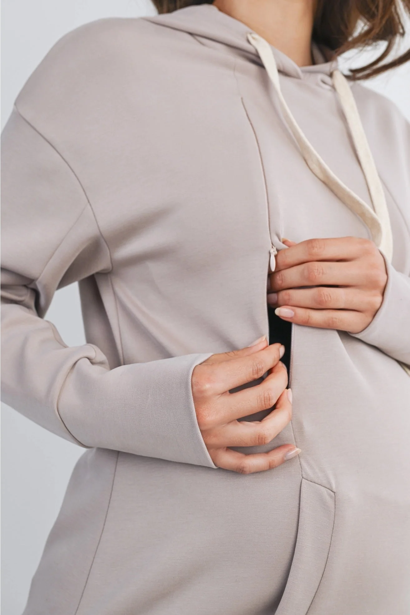 Chandail à capuchon de maternité avec fermeture éclair frontale cachée