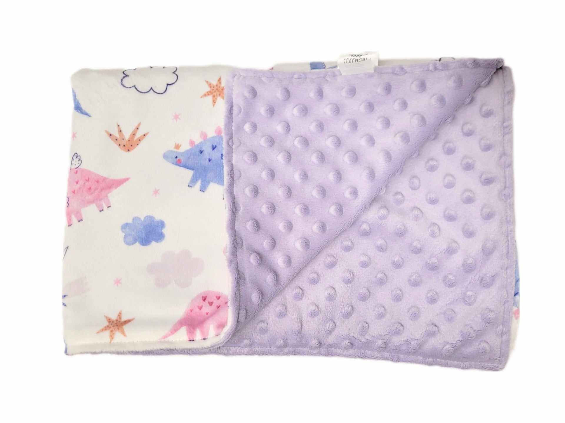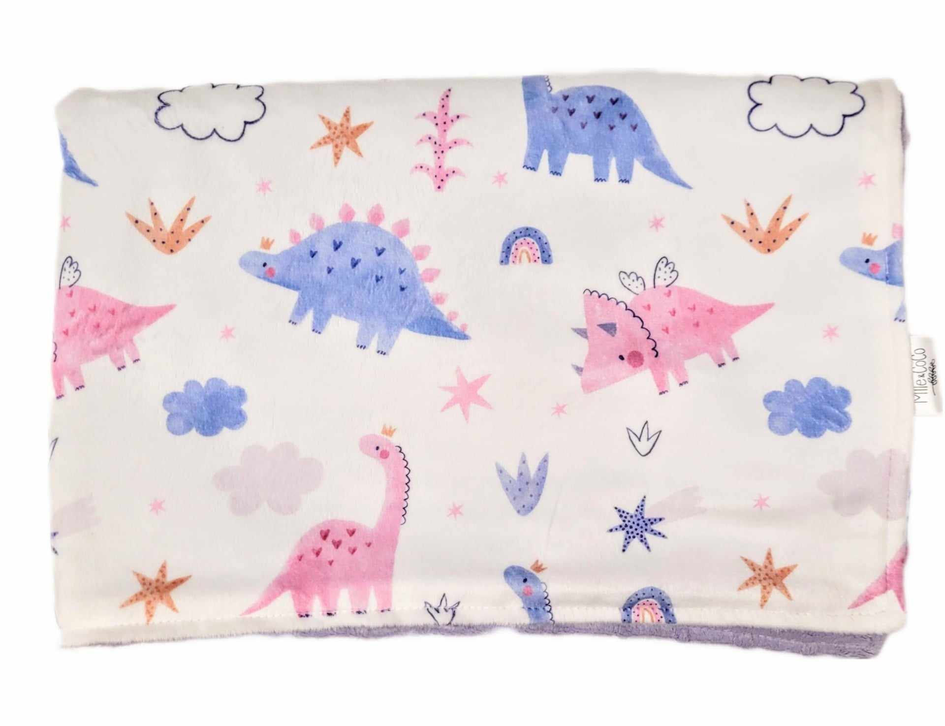 Grande couverture tout en minky. Entièrement en minky à motif d’un côté et en minky dot uni de l’autre.