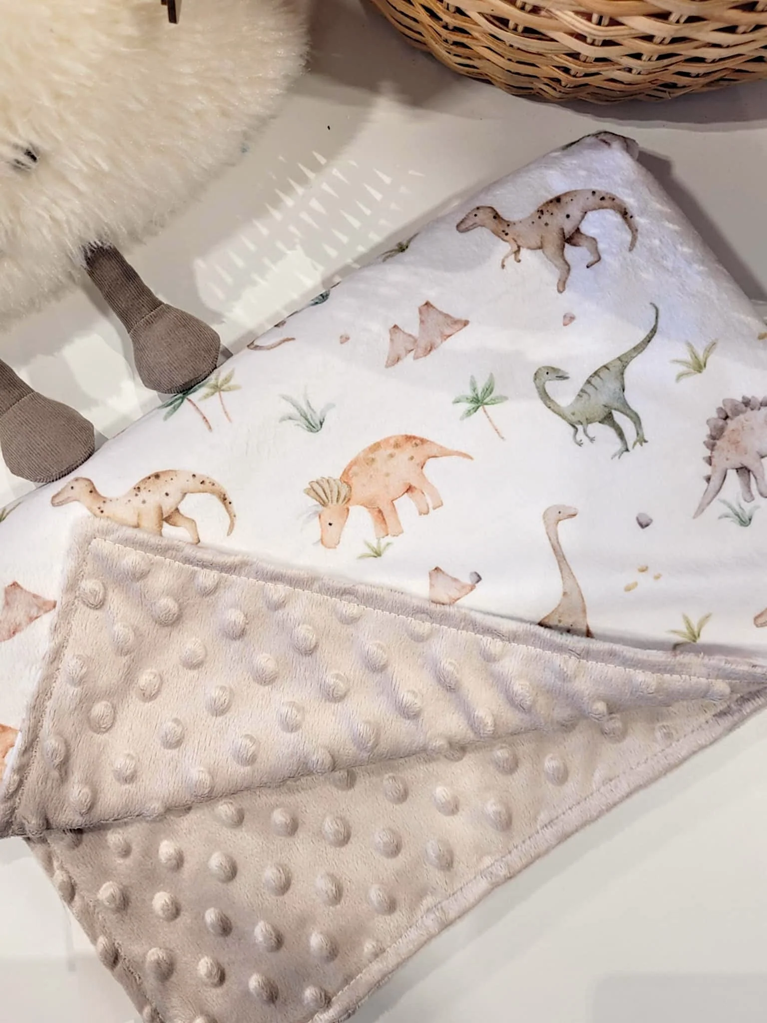 Grande couverture tout en minky. Entièrement en minky à motif d’un côté et en minky dot uni de l’autre.
