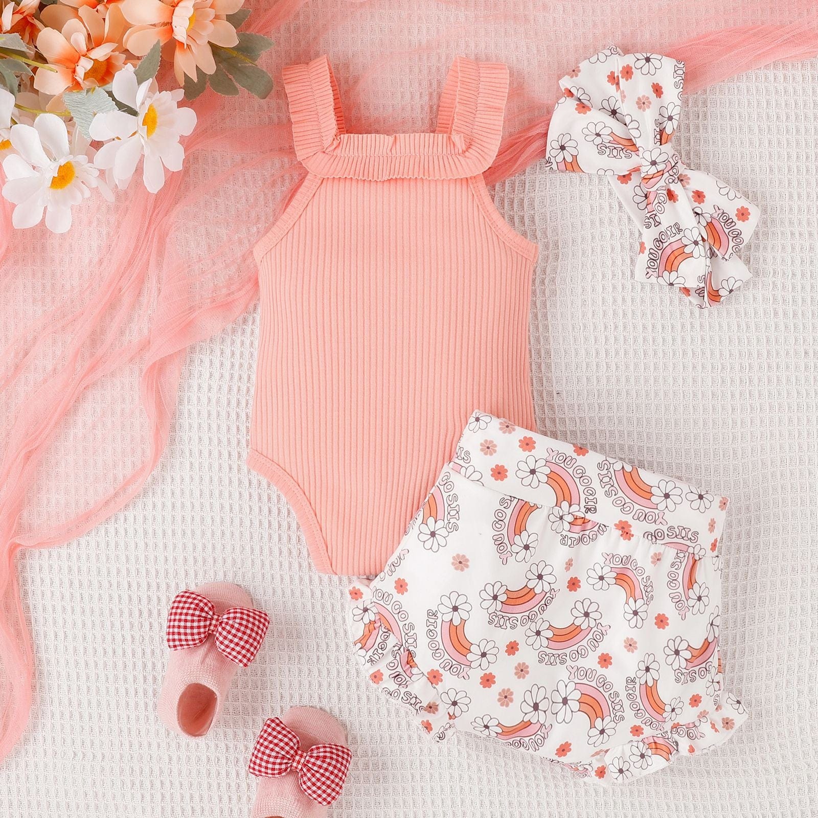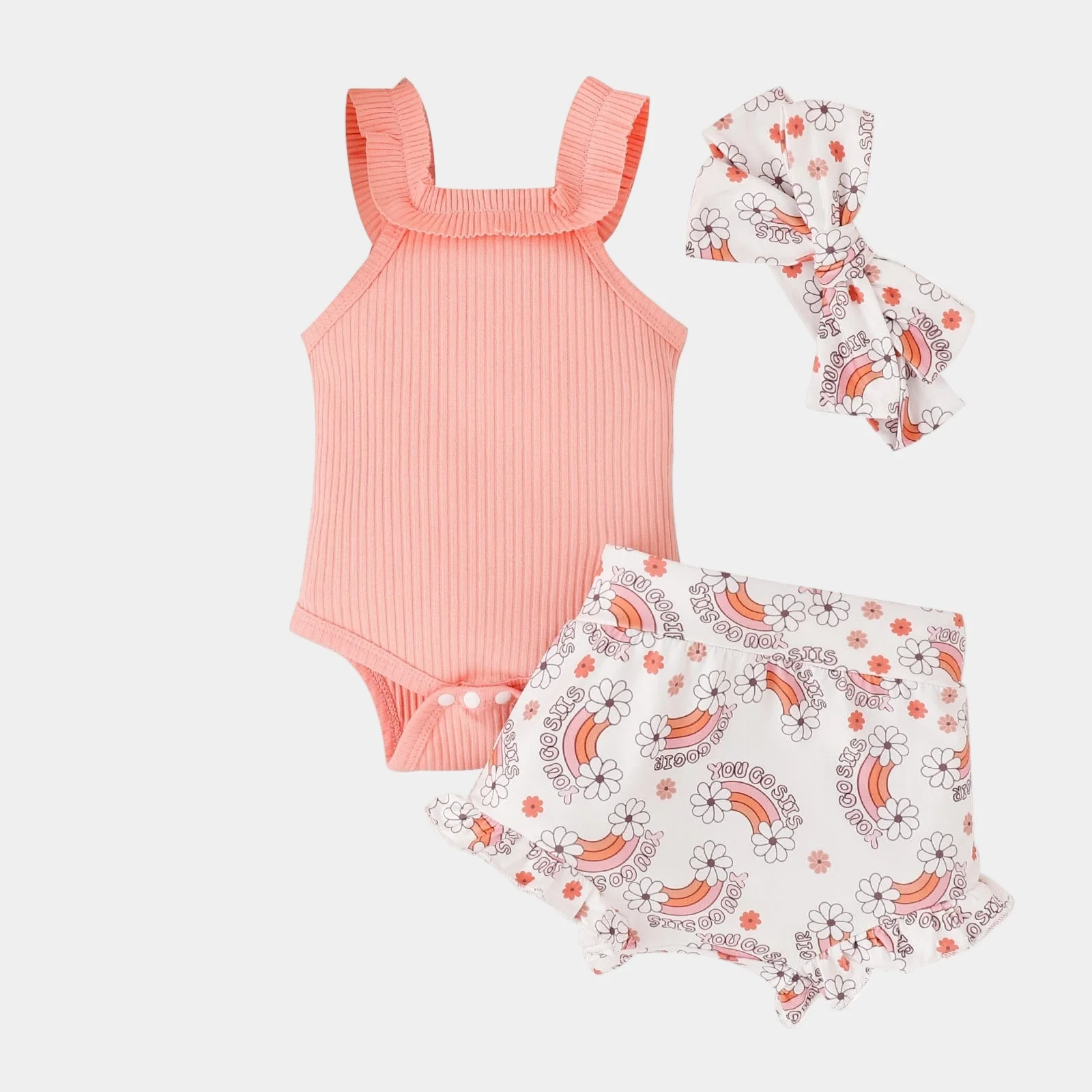 Offrez à votre bébé un arc-en-ciel de bonheur avec cet ensemble body, bandeau et short.