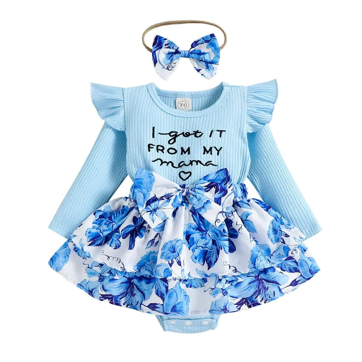 Le body à manches longues en coton doux offre un confort optimal à votre petit ange, tout en ajoutant une touche de chaleur par temps frais. La jupe assortie, ornée de motifs floraux délicats, complète parfaitement le look, créant une tenue douce et élégante.