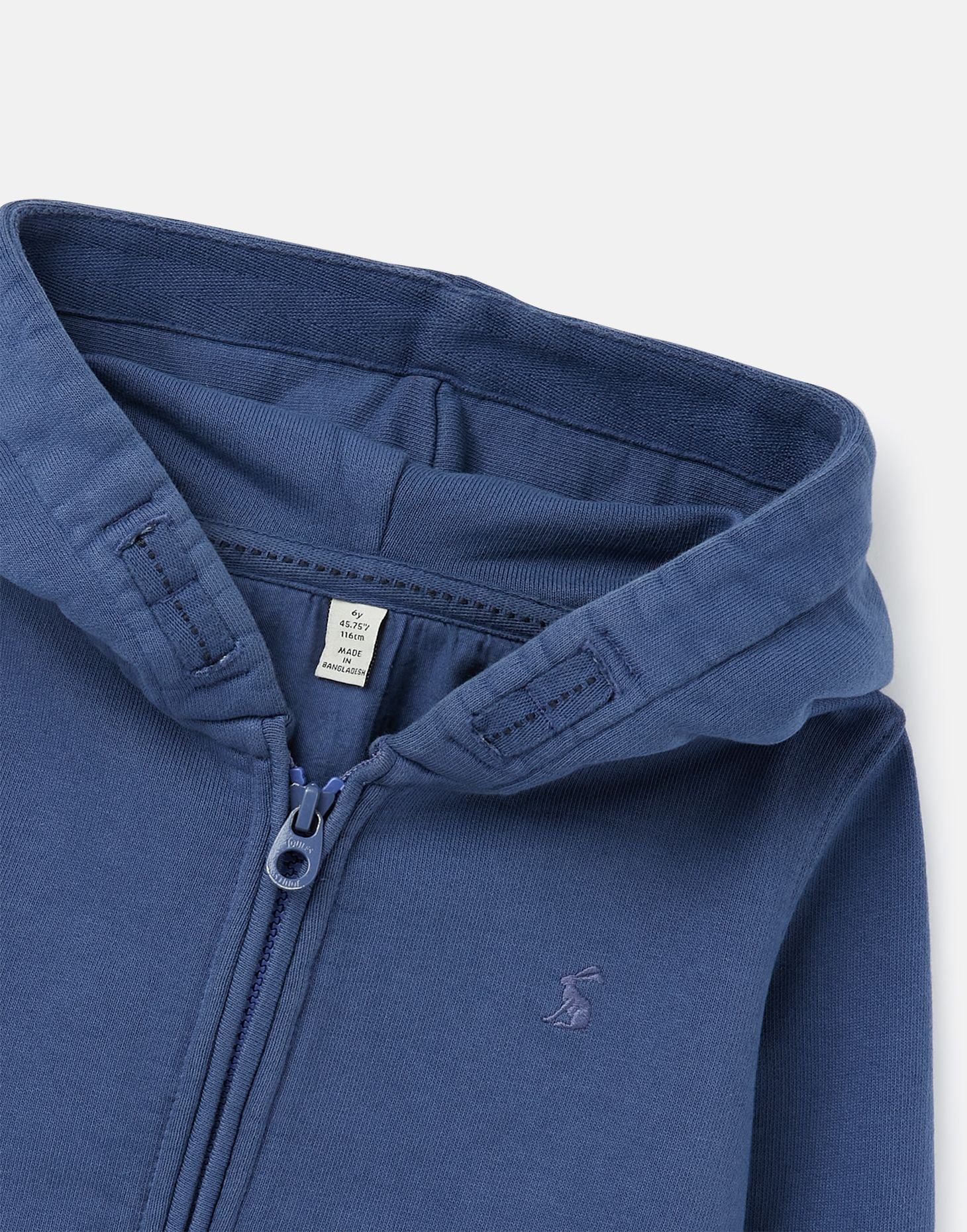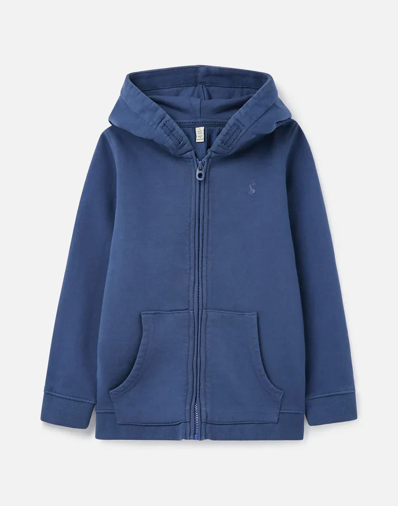 Veste à fermoir bleu de Joules. Doté de son capuchon, il offrira chaleur et confort pour votre tout-petit. Vous y trouverez deux poches pour un confort supplémentaire.