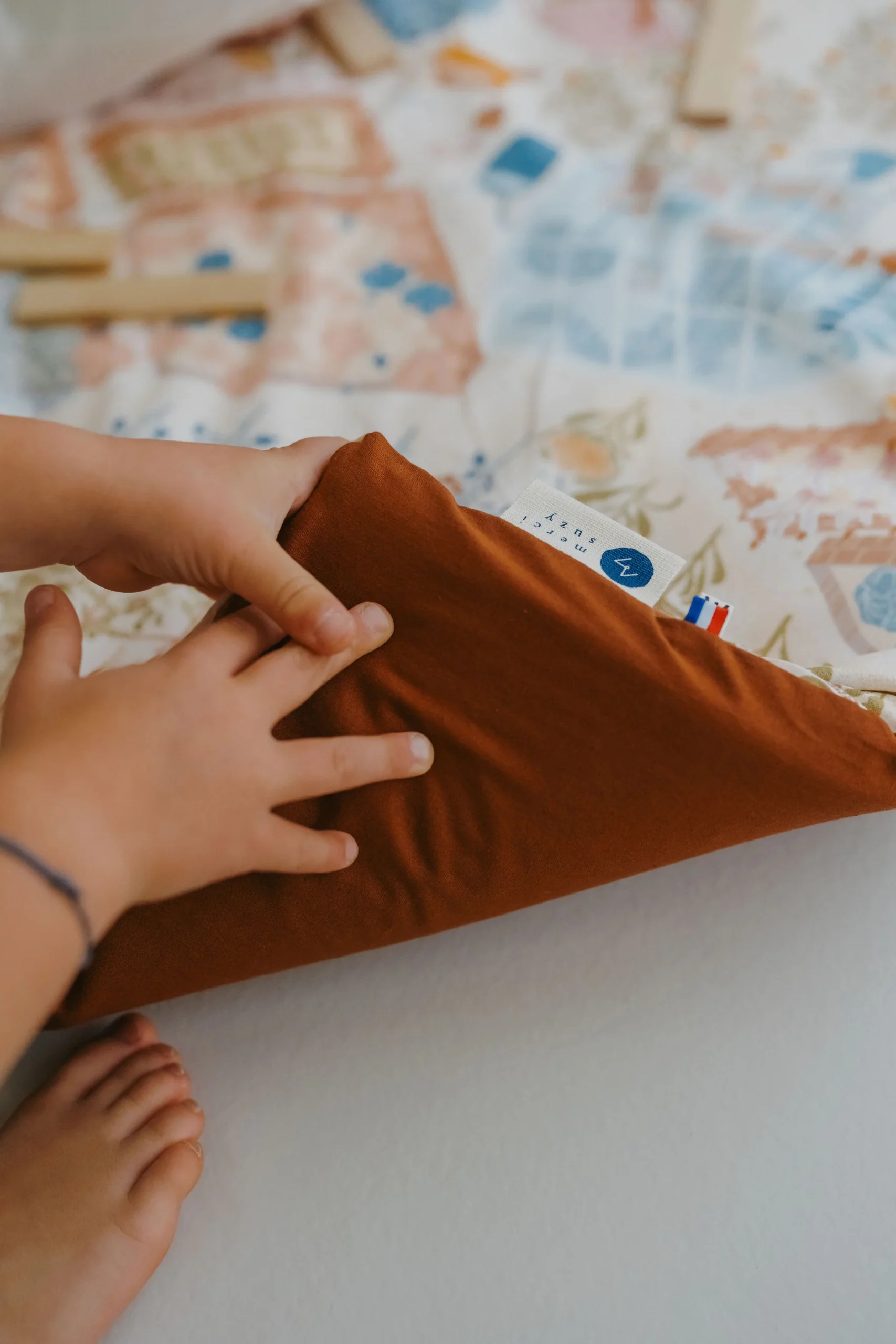 Nos housses de tapis Merci Suzy sont pensées pour s’adapter à votre quotidien de parent : lavables, interchangeables et durables, elles permettent de prolonger la vie de votre tapis tout en variant les ambiances.