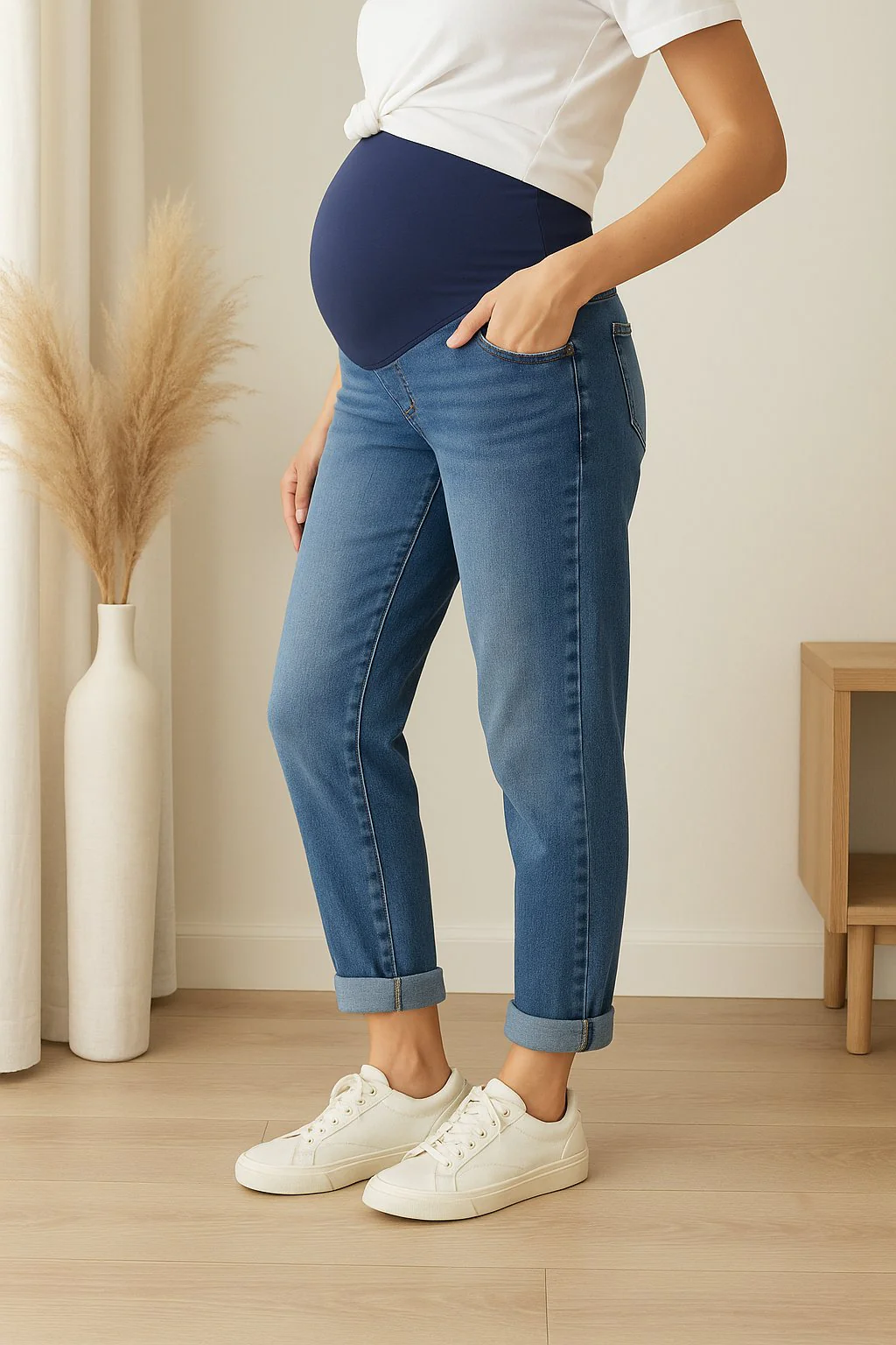 Alliez style et confort avec ce jeans de maternité classique à jambe droite, conçu pour vous accompagner tout au long de votre grossesse. Son tissu extensible et doux épouse vos mouvements tandis que la rallonge intégrée offre un maintien optimal du ventre. La ceinture ajustable à l’intérieur permet un ajustement personnalisé qui s’adapte à l’évolution de votre silhouette.