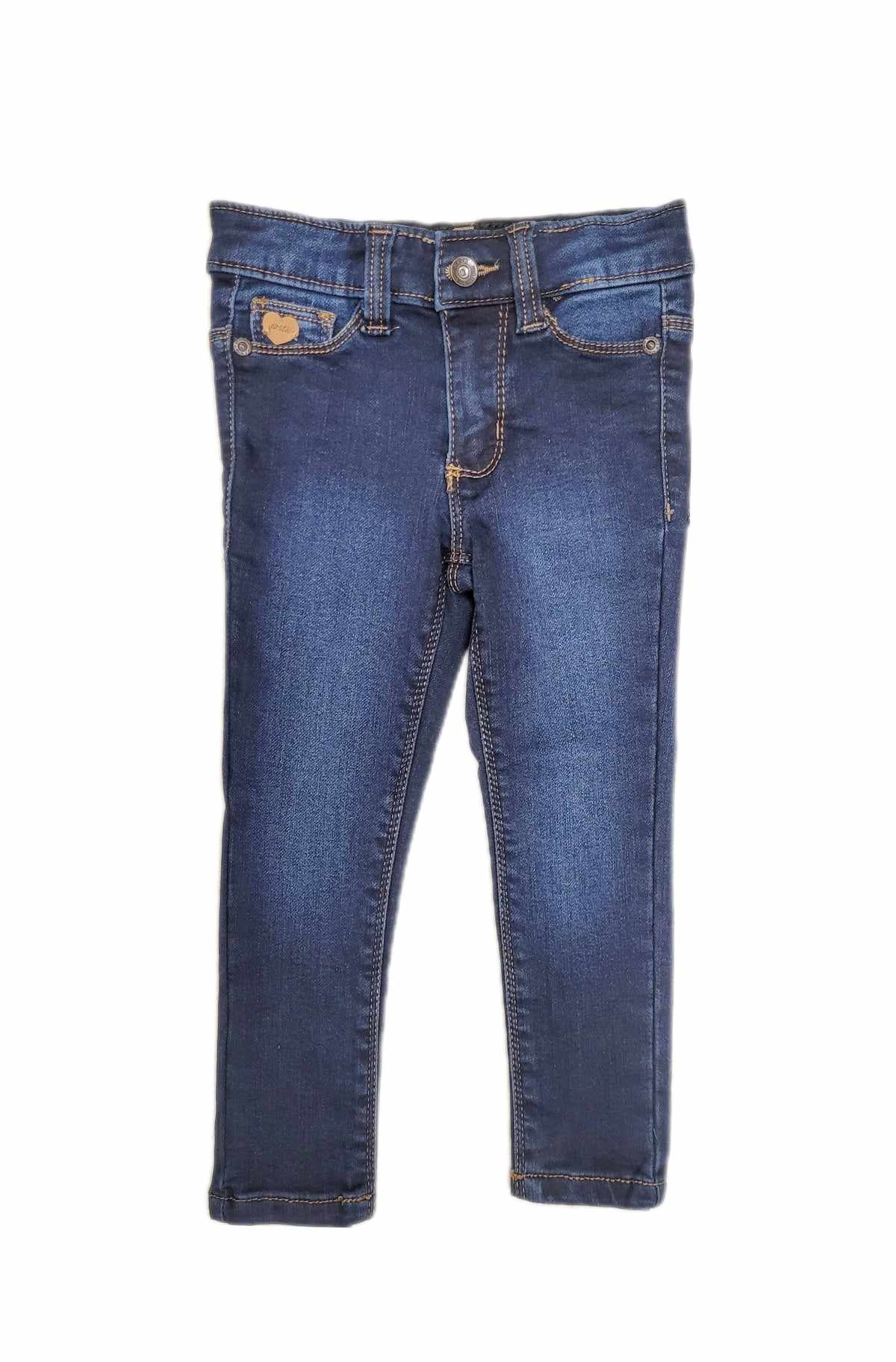 Petit jeans bleu foncé délavé de Warwick. Il est muni de petits élastiques à l’intérieur pour ajuster la taille. Son tissu extensible offrira tout le confort désiré pour votre mini. Le parfait jeans qui allie style et confort.