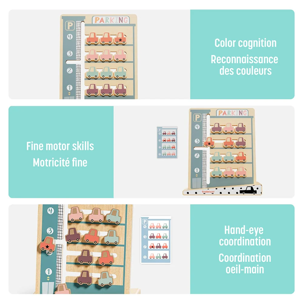 Inspiré de la méthode Montessori, le Parking Challenge encourage la concentration, la coordination œil-main et la réflexion logique, tout en familiarisant les enfants avec les couleurs vives et les modèles visuels.