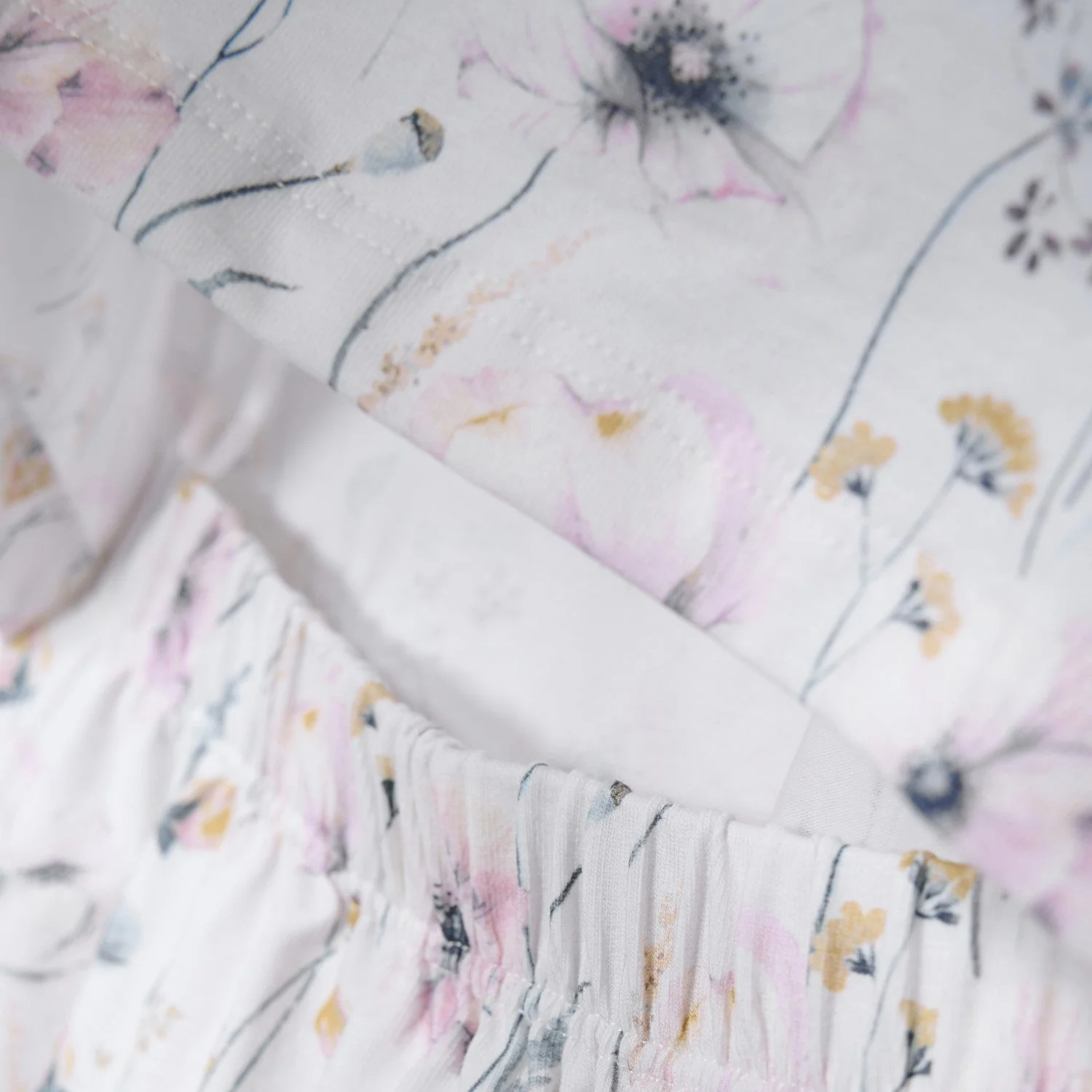 Couleur : Fond blanc cassé et fleurs roses et bleues
