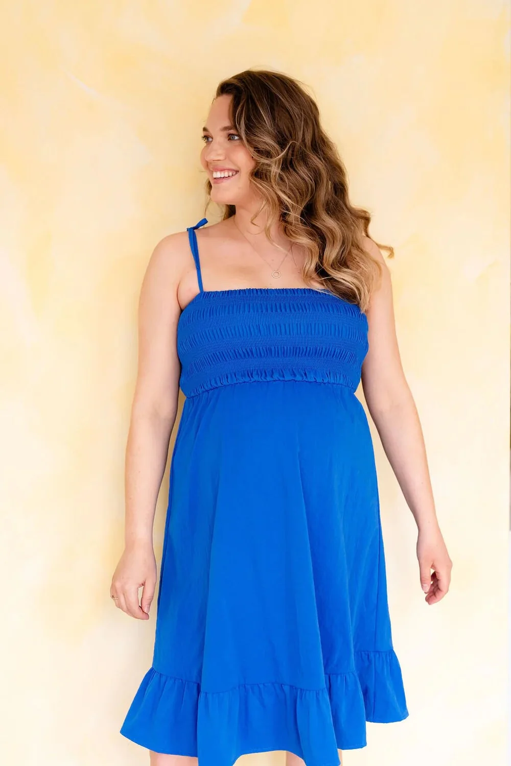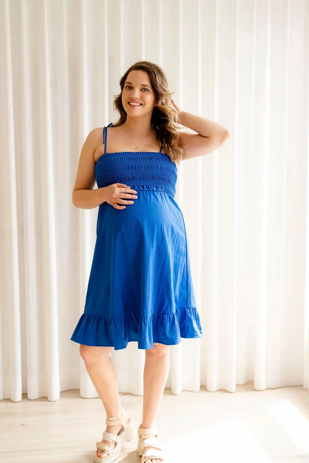 Le buste en nid d’abeille épouse délicatement le haut du corps, tandis que les fines bretelles ajustables permettent un ajustement sur mesure. Pratiques et discrètes, elles se détachent facilement pour faciliter l’allaitement, faisant de cette robe un choix idéal pour les mamans.