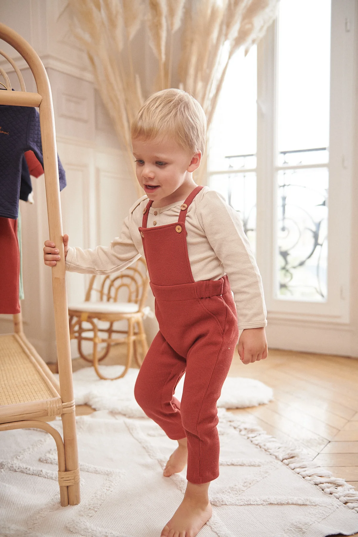 Composition couce et Saine : Fabriquée en coton bio en conversion, la Salopette Plümme prend soin de la peau de votre bébé.