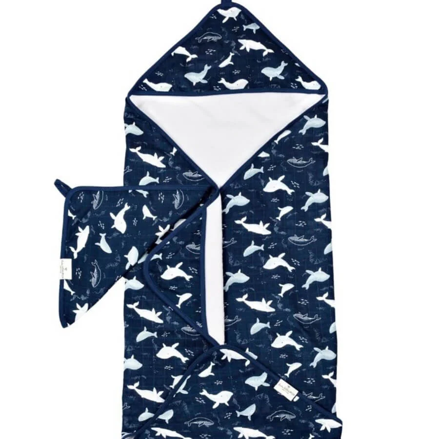 Fabriqué avec un tissu doux comme du beurre et doublé de tissu éponge ultra-absorbant en bambou, notre ensemble de serviettes à capuchon en mousseline est une façon confortable de donner le coup d’envoi à la routine du coucher de votre bébé. La serviette aux dimensions généreuses garde la tête et les mains au chaud grâce à la capuche et aux poches, tandis que le gant de toilette assorti est doux pour la peau délicate de bébé. Parfait pour la plage et la piscine aussi!