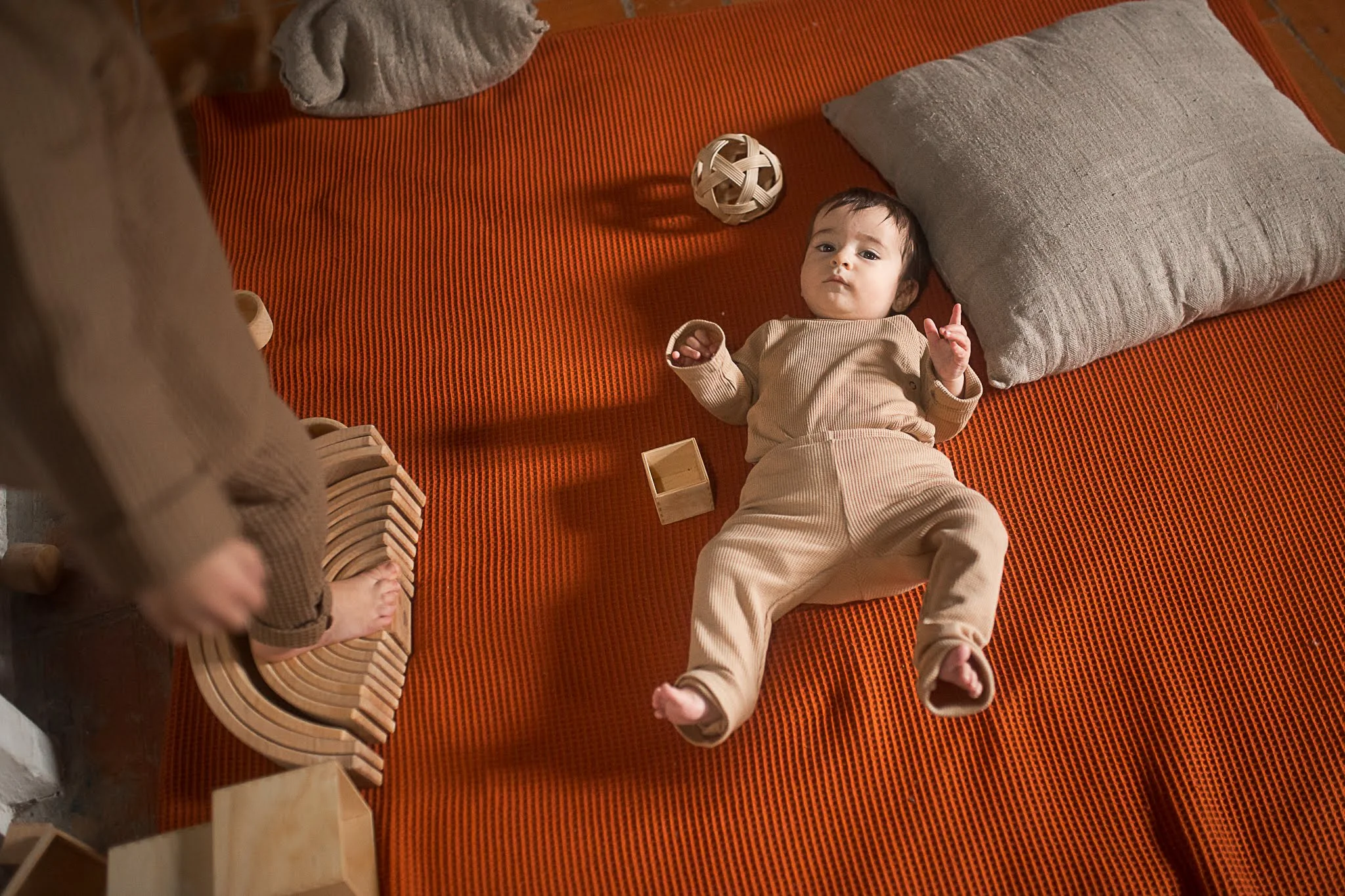 Notre Tapis est l’endroit idéal des premiers moments d’éveil pour découvrir, expérimenter et s’éveiller confortablement, en motricité libre, sans contrainte et dans le respect de la physiologie.