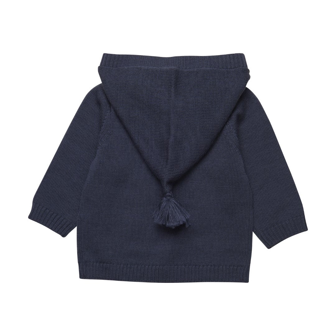 Veste en tricot marine de Fixoni. Son tissu doux apportera chaleur et confort à votre tout-petit. De plus, sa couleur neutre s’agencera facilement avec sa garde-robe déjà existante. Vous trouverez un petit pompon au bout du capuchon pour une petite touche estival