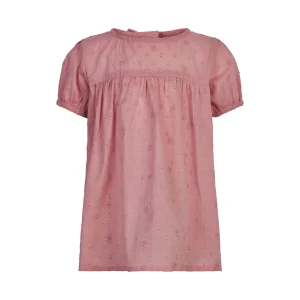Chandail manches courtes – Rose et broderie – Minymo