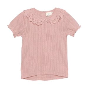 Chandail manches courtes – Rose et broderie – Minymo