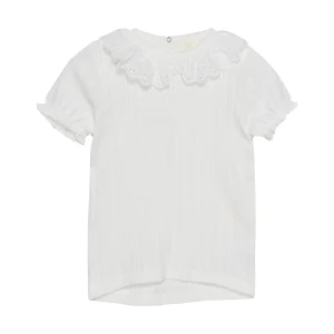 Chandail – Blanc avec dentelle au collet – En Fant