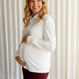 Chemise classique maternité et allaitement – Blanc – Rose Maternité